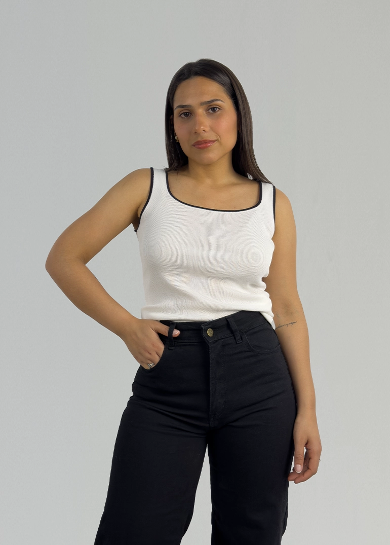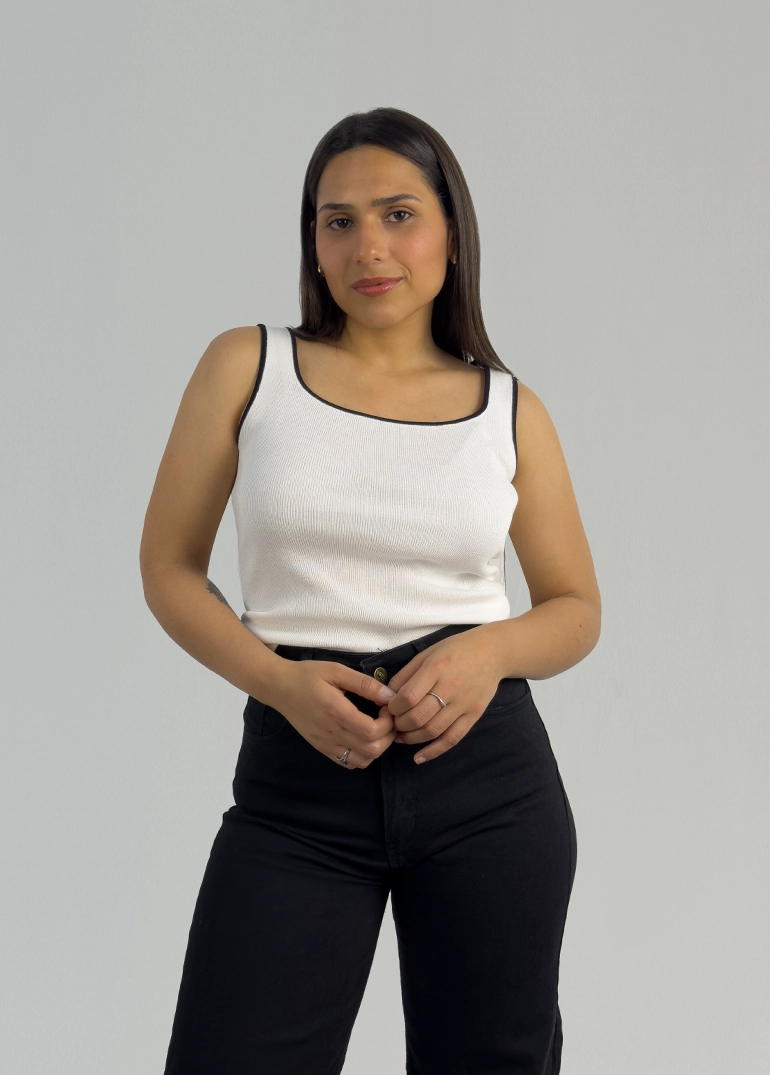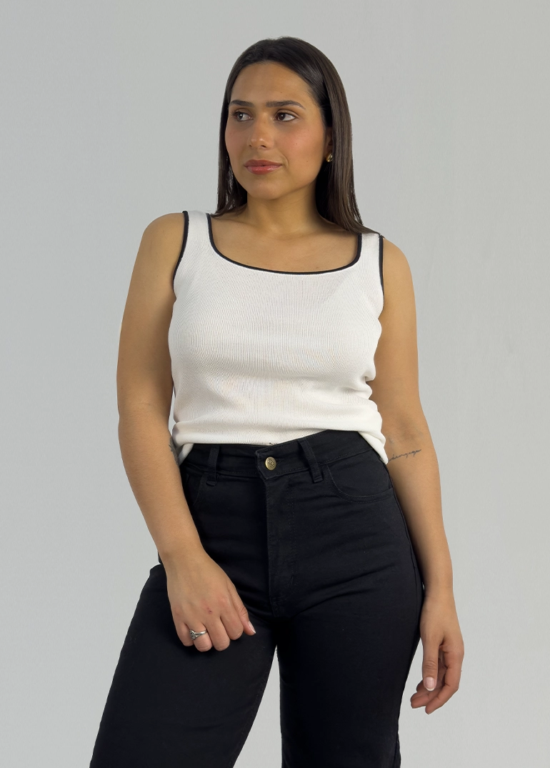 Musculosa en hilo escote cuadrado.