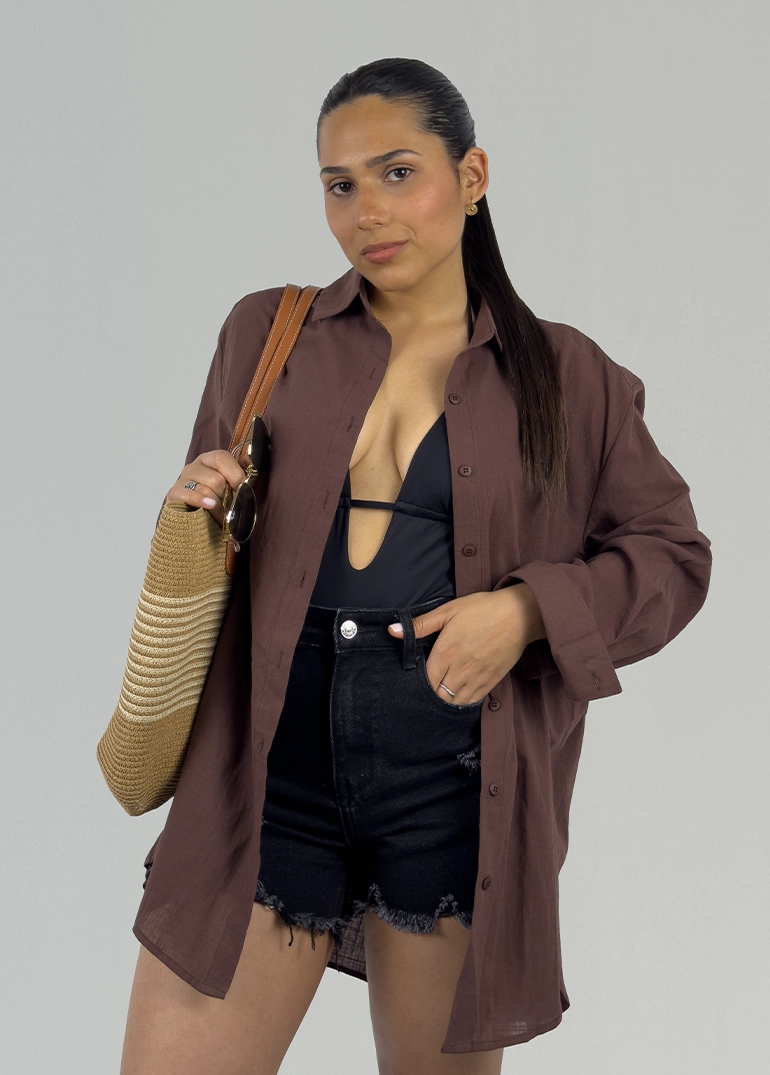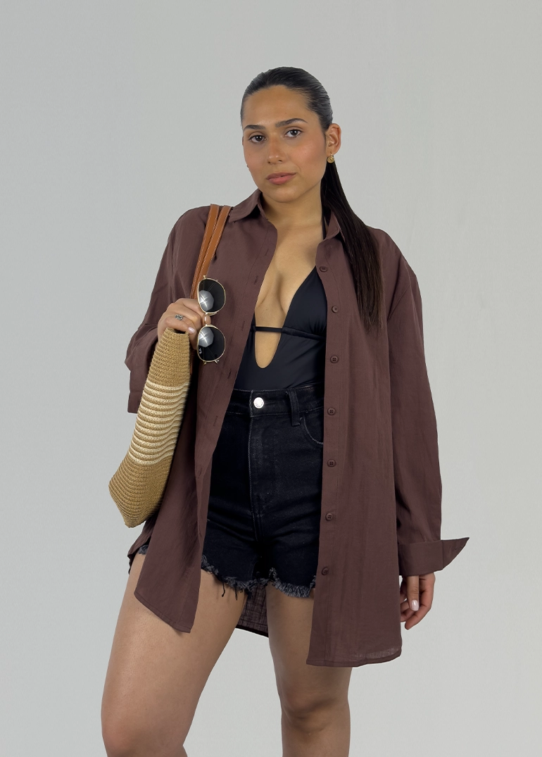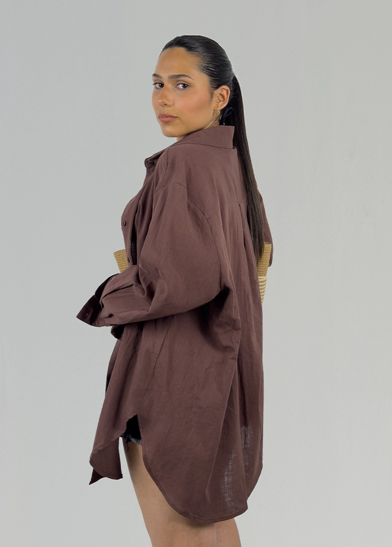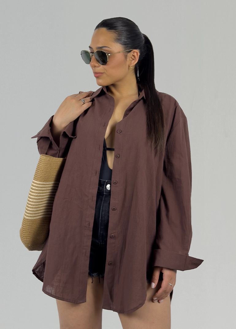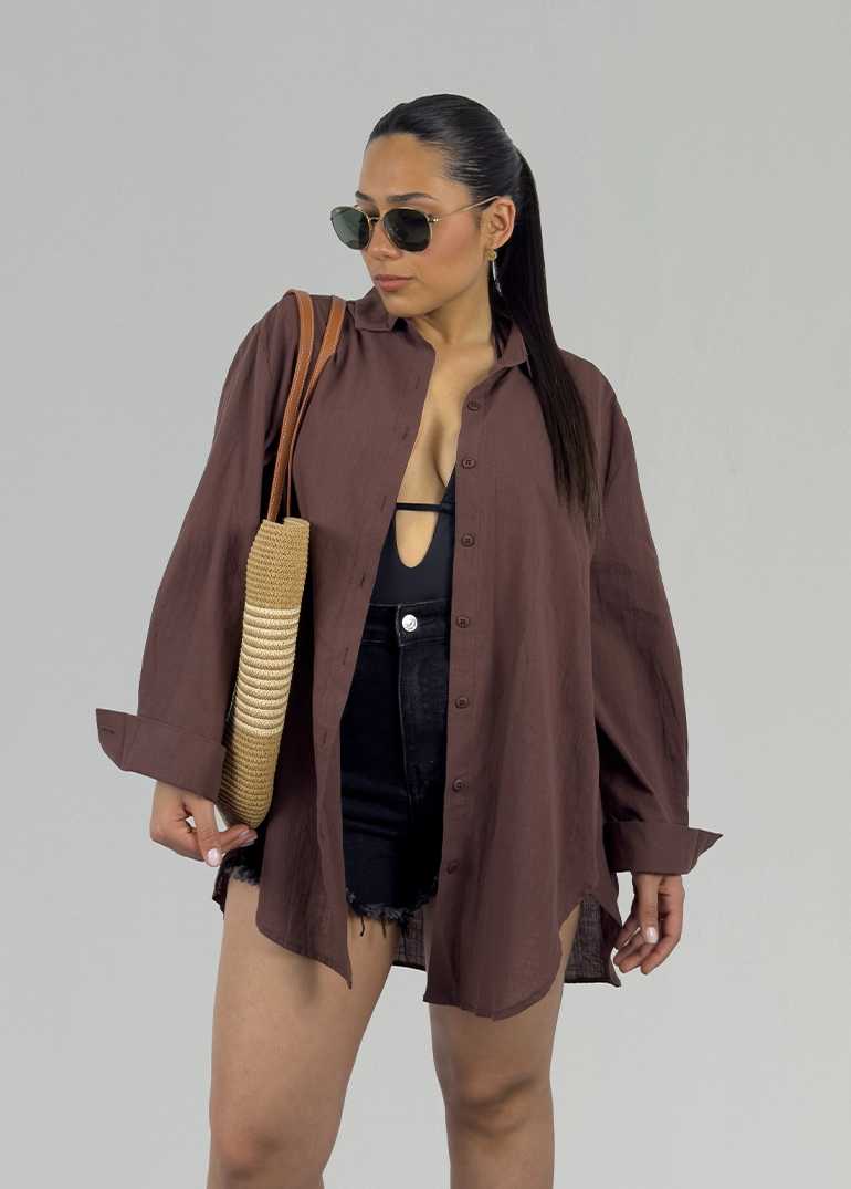 Camisa en lino, diseño clásico camisero largo y overzise.