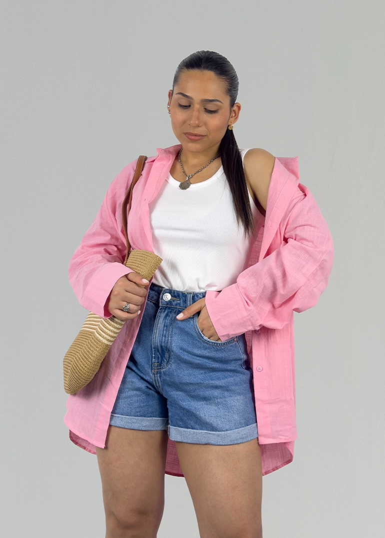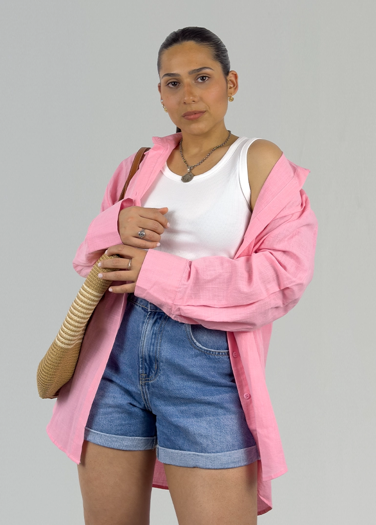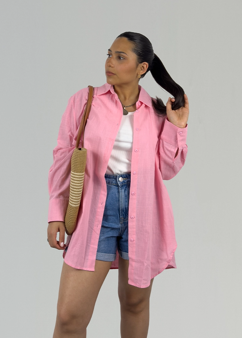 Camisa en lino, diseño clásico camisero largo y overzise.
