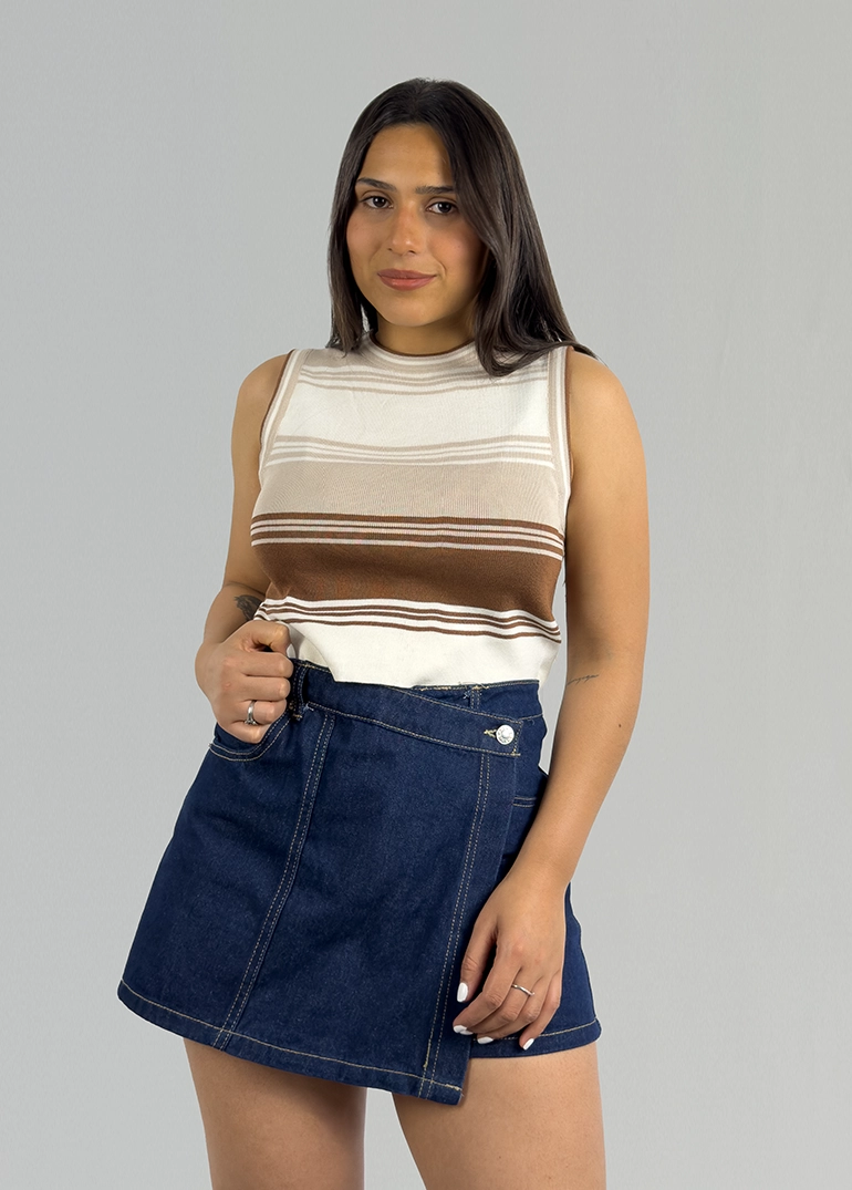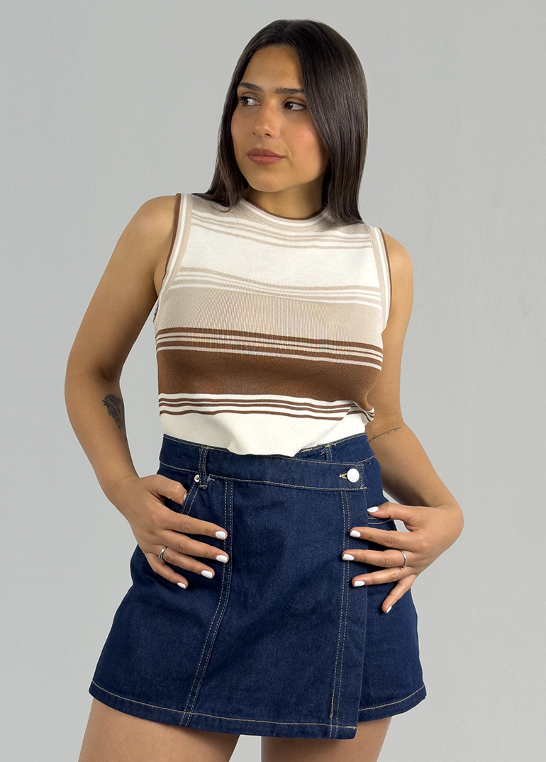 Básica musculosa en hilo con diseño rayado en colores combinados.