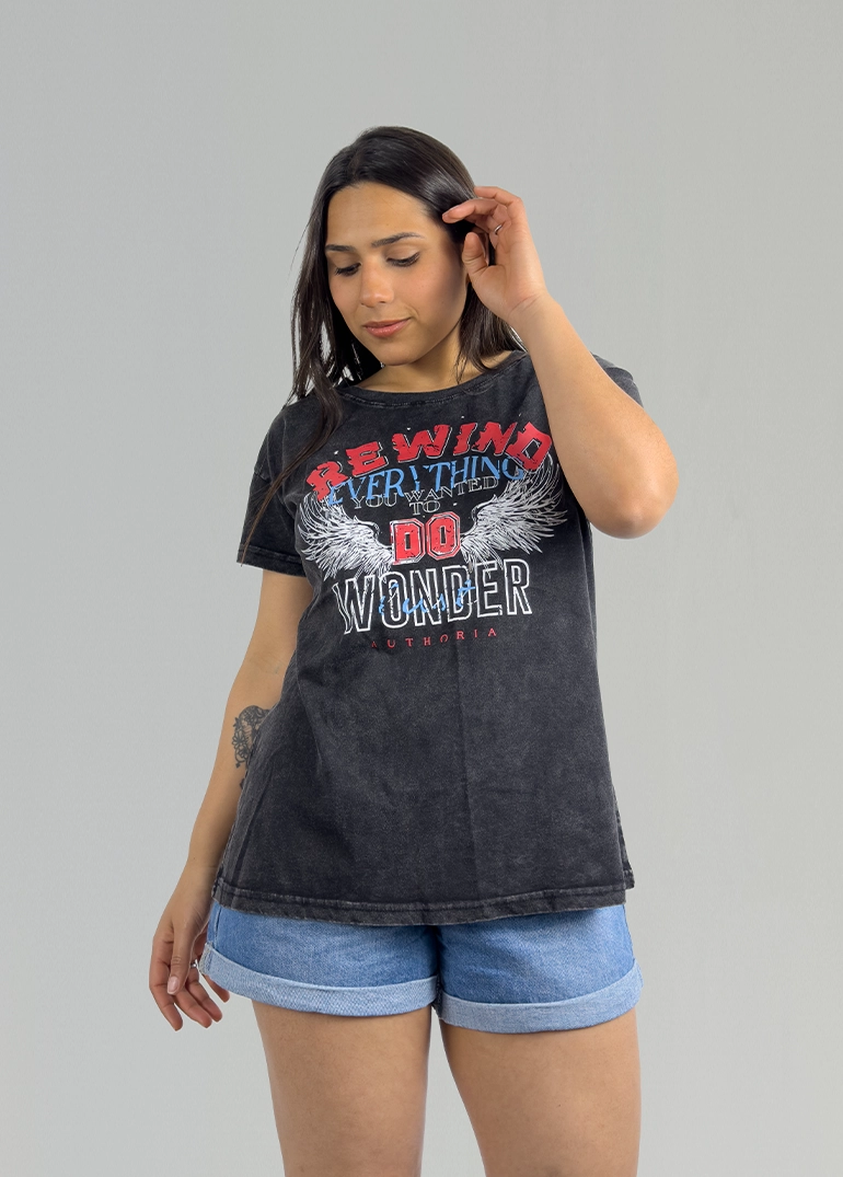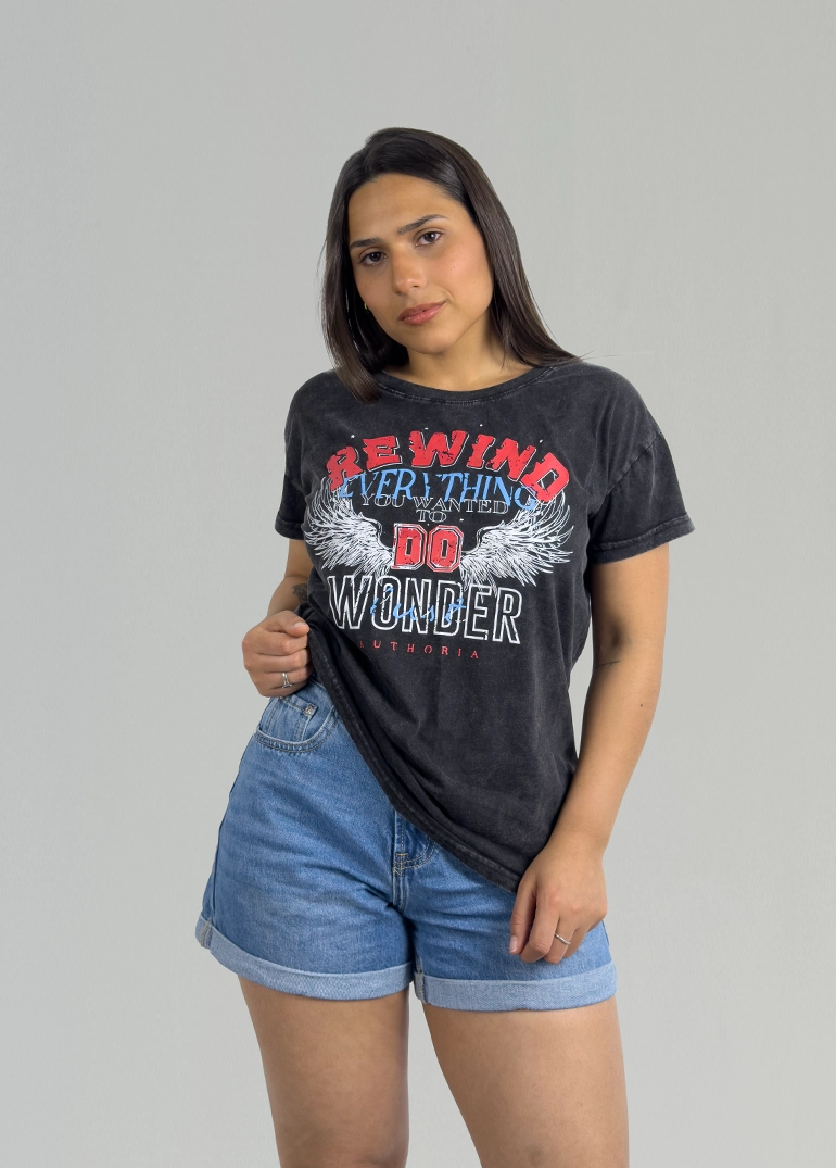 Remera acid wash con diseño.